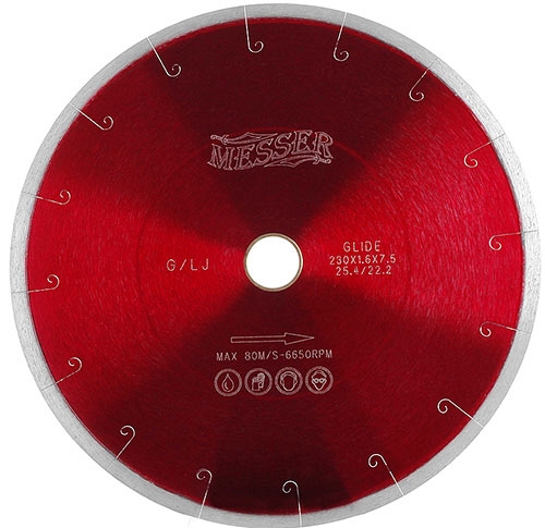 Алмазные диски по граниту Messer G/L J-SLOT (Мессер Г/Л Ж-СЛОТ) со сплошной кромкой предназначены для резки гранита, габбро, базальта, кварцита, клинкера, бакора, твердого камня.