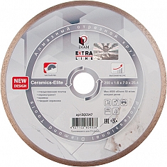 Алмазный отрезной круг Diam Extra Line 1A1R Корона Ceramics-Elite 200 мм (Диам Экстра Лайн 1А1Р Корона Керамикс-Элит 200 мм) – специальный алмазный круг со сплошной режущей кромкой для мокрой резки глазурованной плитки, твердой керамики, керамогранита, мрамора и аналогичных по своим характеристикам материалов на болгарках (ушм), штроборезах и плиткорезах электрических с подачей воды.
