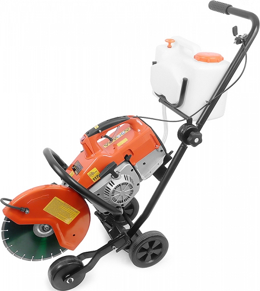- Тележка (дополнительная опция!) облегчает работу оператора на длинных участках, позволяя делать прямой рез с регулируемой глубиной: