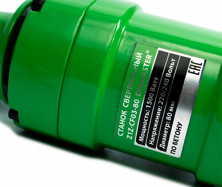 Дрель для алмазного бурения Diamaster Z1Z-CF03-80 (Диамастер З1З-ЦФ03-80) предназначена для сверления отверстий Ø 20 – 80 мм в бетоне, железобетоне, кирпиче, камне и других материалах, вручную и со станиной, с подачей и без подачи воды.