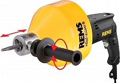- Rems Мини-Кобра S – быстрая очистка труб от засорения. Мгновенное реверсирование спиральной подачи / возврата посредством быстрого переключения.
