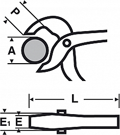- Искривленная верхняя губка под гайку и прямая нижняя губка расположены параллельно под углом 45° к рукоятке