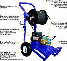 - Профессиональный насос высокого давления и электродвигатель с защитой от перегрузки повышают эффективность очистки и надежность эксплуатации