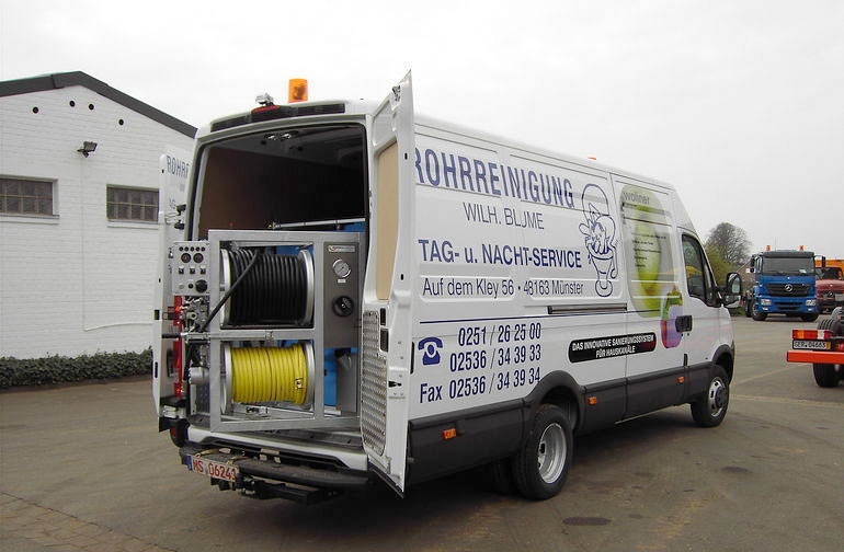 - Монтаж и демонтаж в различные типы автомобилей. Пользователь может самостоятельно выбрать автомобиль типа "Газель", ЗИЛ "Бычок" или прицеп, в который будет установлена каналопромывочная установка для прочистки труб водой под высоким давлением. Благодаря рамной конструкции каналопромывочную установку в любое время можно переустановить на другой автомобиль. Собственный двигатель обеспечивает независимость от двигателя автомобиля, небольшие расходы на техническое обслуживание, четкое разделение гарантийных обязательств на каналопромывочную установку и автомобиль