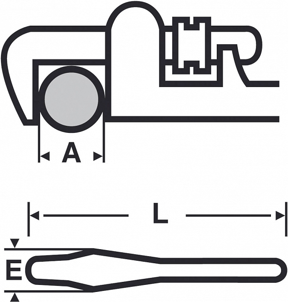 - Стальная верхняя губка подпружинена двумя пружинами, обеспечивающими эффективную автоматическую фиксацию на трубе