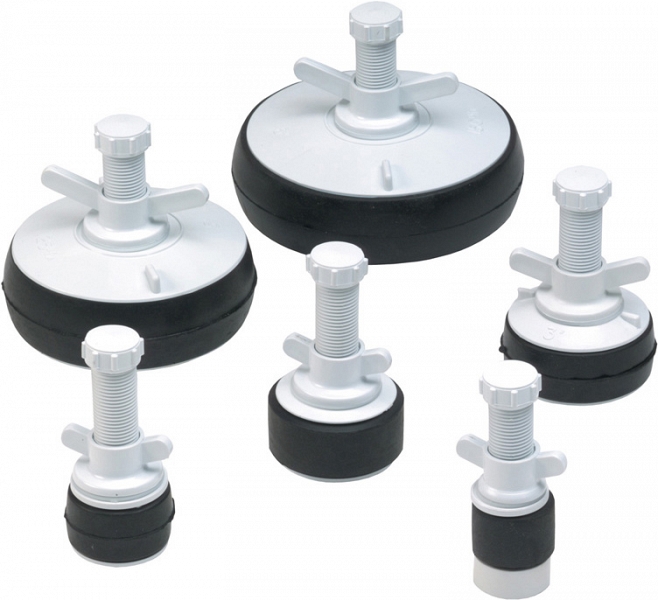 - Уплотнительное кольцо из нейлона между 2-мя блинами на штоке с резьбой и прижимом