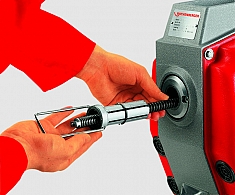 - Работает с прочистными спиралями Ø 32 и 22 мм (без замены зажимных кулачков), а также Ø 16, 10 и 8 мм с помощью специальных зажимных цанг с легким и удобным монтажем