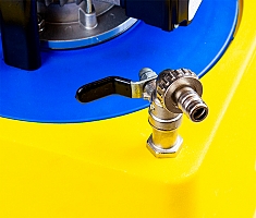 - Трехходовой кран позволяет сливать использованный раствор и заменять на новый без остановки процесса промывки, что сокращает время очистки