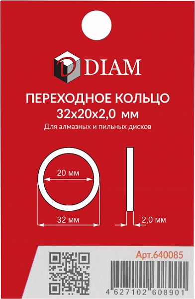 Цена и технические характеристики переходного кольца для алмазных и пильных дисков Diam 32×20×2,0 мм: