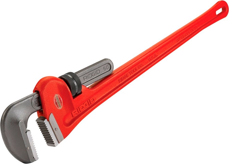 Прямой трубный ключ Ridgid Heavy Duty 60" (Риджид Хэви Дьюти 60") предназначен для больших нагрузок, известен во всем мире своей великолепной прочностью и эксплуатационной надежностью и завоевал признание профессионалов, работающих с трубами Ø до 200 мм (8").
