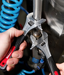 - Широкий зев: губки раскрываются шире, чем у разводных ключей такой же длины