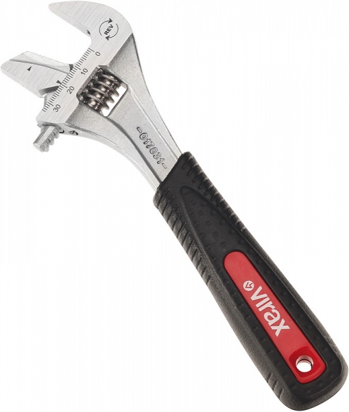 Разводной ключ с реверсом Virax 10" (Виракс 10") – высококачественный инструмент 2 в 1: насечки на одной стороне для закручивания и ослабления труб или поврежденных гаек, вторая сторона гладкая для обычных работ.