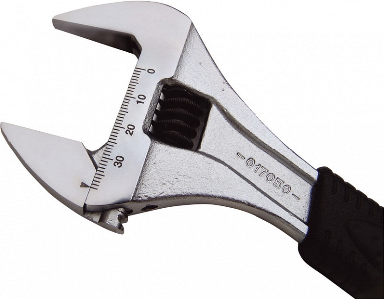 - Особо широкий зев позволяет заменить 3 типоразмера разводных ключей 8", 10", 12"