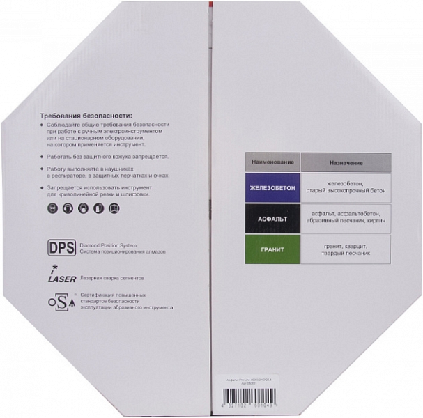 - Для бензорезов и электрических резчиков: подходит для использовании на ручных бензорезах и электрических резчиках (возможно потребуется установка через переходное кольцо, в комплект не входит)
