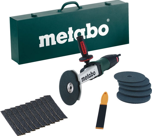 Шлифователь швов Metabo KNSE 12-150 Set (Метабо КНСЕ 12-150 СЕТ) это плоская шлифовочная машина для работы с угловыми сварными швами на высокосортной стали в узких местах и труднодоступных местах. Имеет экстремально плоскую конструкцию и двухступенчатый редуктор. Имеет двигатель нового поколения Metabo Marathon с потребляемой мощностью 1200 Вт. Шлифователь с регулируемой двухпериодной электроникой Vario-Tacho-Constamatic, обеспечивающей плавное или автоматическое изменение частоты вращения в пределах 1300-4000 об/мин.