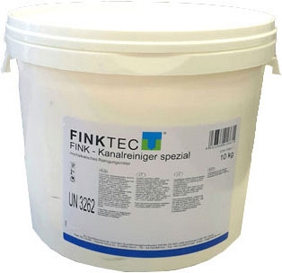 Средство для прочистки канализационных труб Finktec FINK-Kanalreiniger Spezial (Финктек ФИНК-Каналрейнигер Специаль) – сильный гранулированный щелочной очиститель для канализационных стоков, состоящий из щелочи и поверхностно-активных веществ (ПАВ), для эффективной промывки сточных систем на мясоперерабатывающих предприятиях, промышленных кухнях, на предприятиях общественного питания, также для использования в домашнем хозяйстве. Отложения жира, белка и прочих загрязнений различного вида полностью растворяются в водных стоках, сифонах и ливнеспусках, обеспечивается беспрепятственный свободный проток. Наибольший эффект от применения средства достигается при совместном использовании с электромеханическими прочистными машинами.