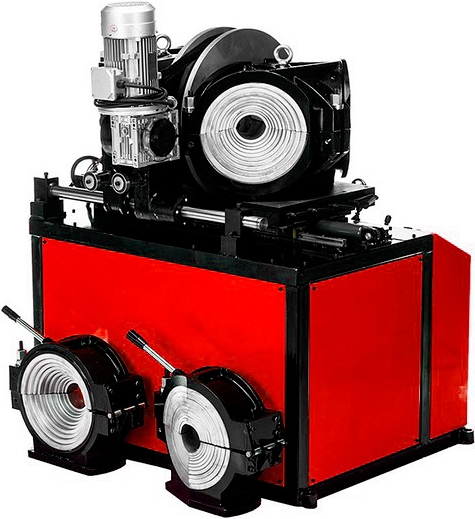 - Функциональные возможности: работает с полипропиленовыми (ПП), полиэтиленовыми (ПЭ, ПНД), поливинилденфторидными (ПВДФ) трубами с наружным Ø 90 – 315 мм, производит отводы, тройники и крестовины.