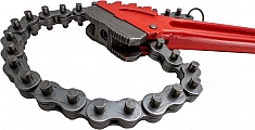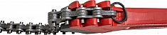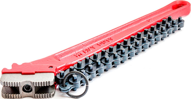 - Прочная цепь из специальной стали c улучшенной термообработкой: пригоняется под трубы всех указанных диаметров; обхватывает трубу по всему радиусу, за счет этого усилие распределяется равномерно по поверхности трубы