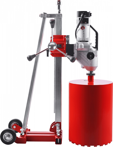 Установка алмазного бурения Cardi 500 (Карди 500) с неимеющем аналогов в мире сверлильным двигателем с 6-ти скоростным редуктором! Имеет широкий диапазон различных скоростей позволяет установить наилучшую скорость для алмазного сверления отверстий! Предназначена для алмазного бурения отверстий Ø 25 – 500 мм в бетоне, высокоармированном бетоне, а также Ø 25 – 600 мм в асфальте, кирпичной кладке под углом 0° – 75° с обязательной подачей воды.