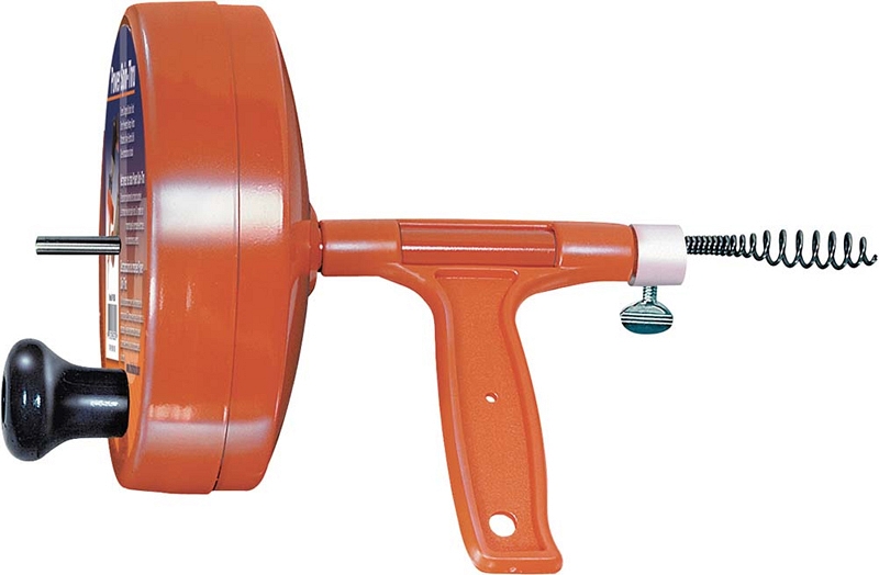 - Прочистная спираль с грушевидной головкой располагается в барабане, что позволяет избегать ее контакта с чистыми поверхностями кухни и ванной комнаты