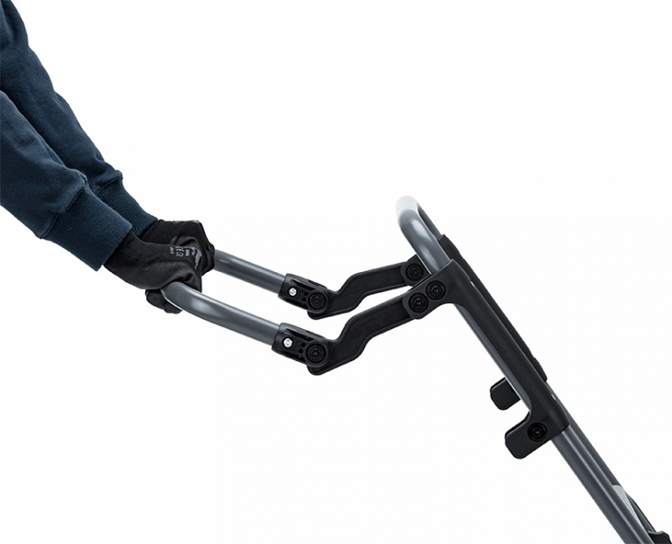 - Эксклюзивная запатентованная рукоятка с дополнительной рамой защищает оператора от вредного воздействия вибрациии складывается пополам, уменьшая габариты при транспортировке и хранении