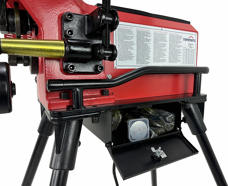 - Все инструменты и принадлежности необходимые для корректной работы размещаются в специальном металлическом ящике ToolBox Pro, встроенном под корпусом желобонакатного станка